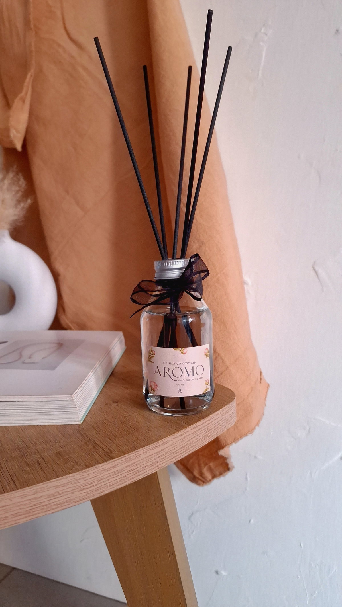 Difusor de varillas en botella de vidrio de 125 ml con varillas negras